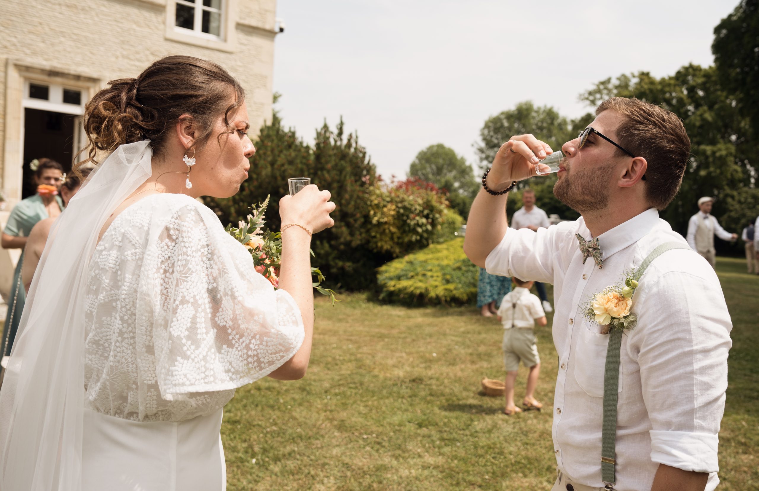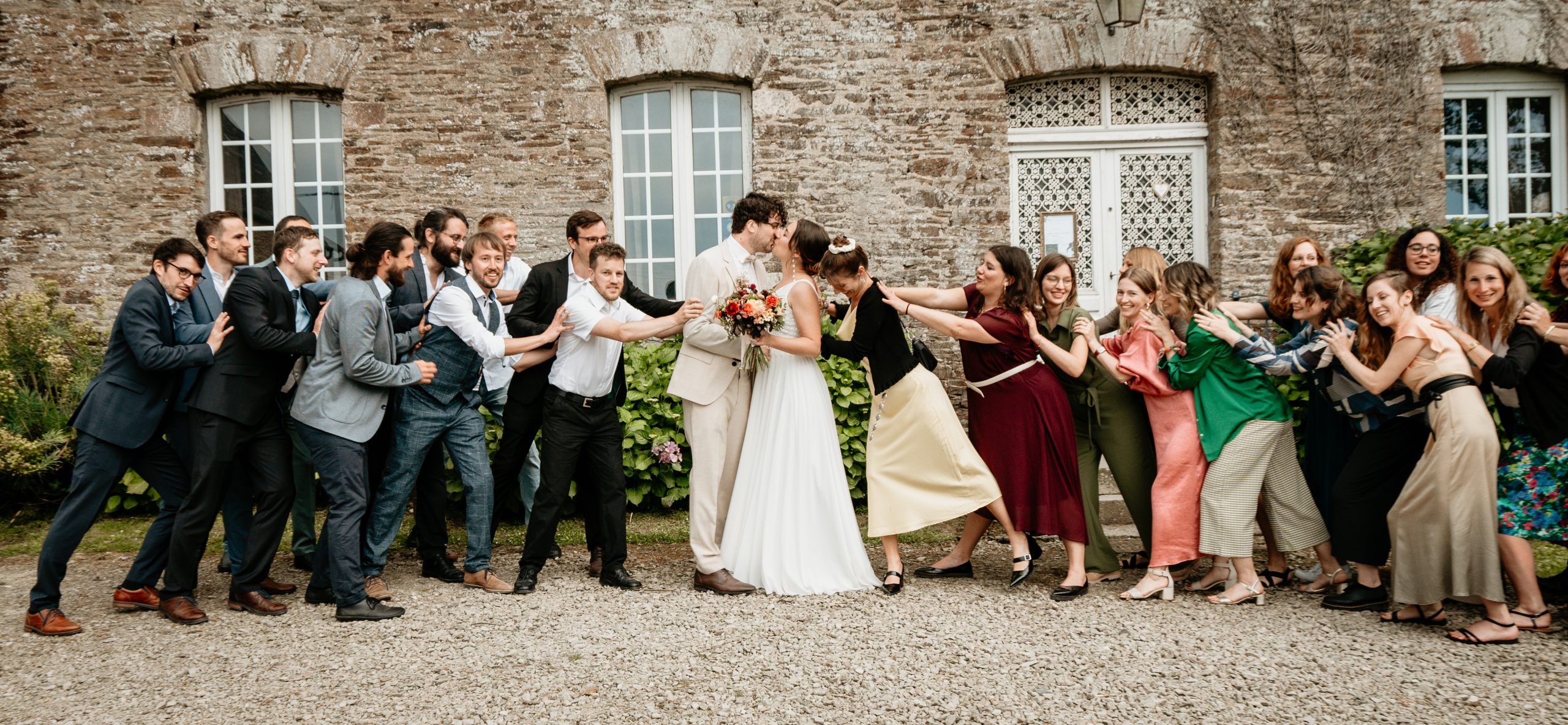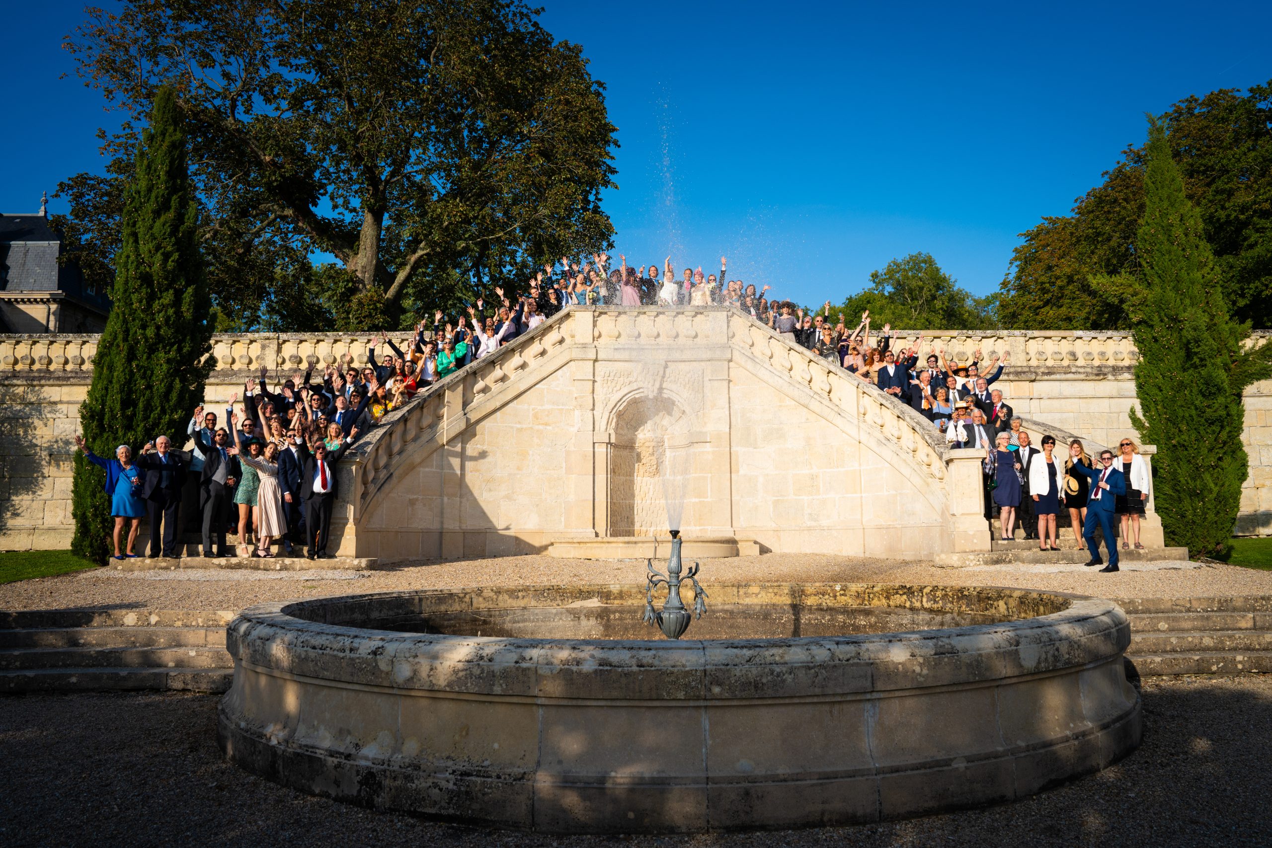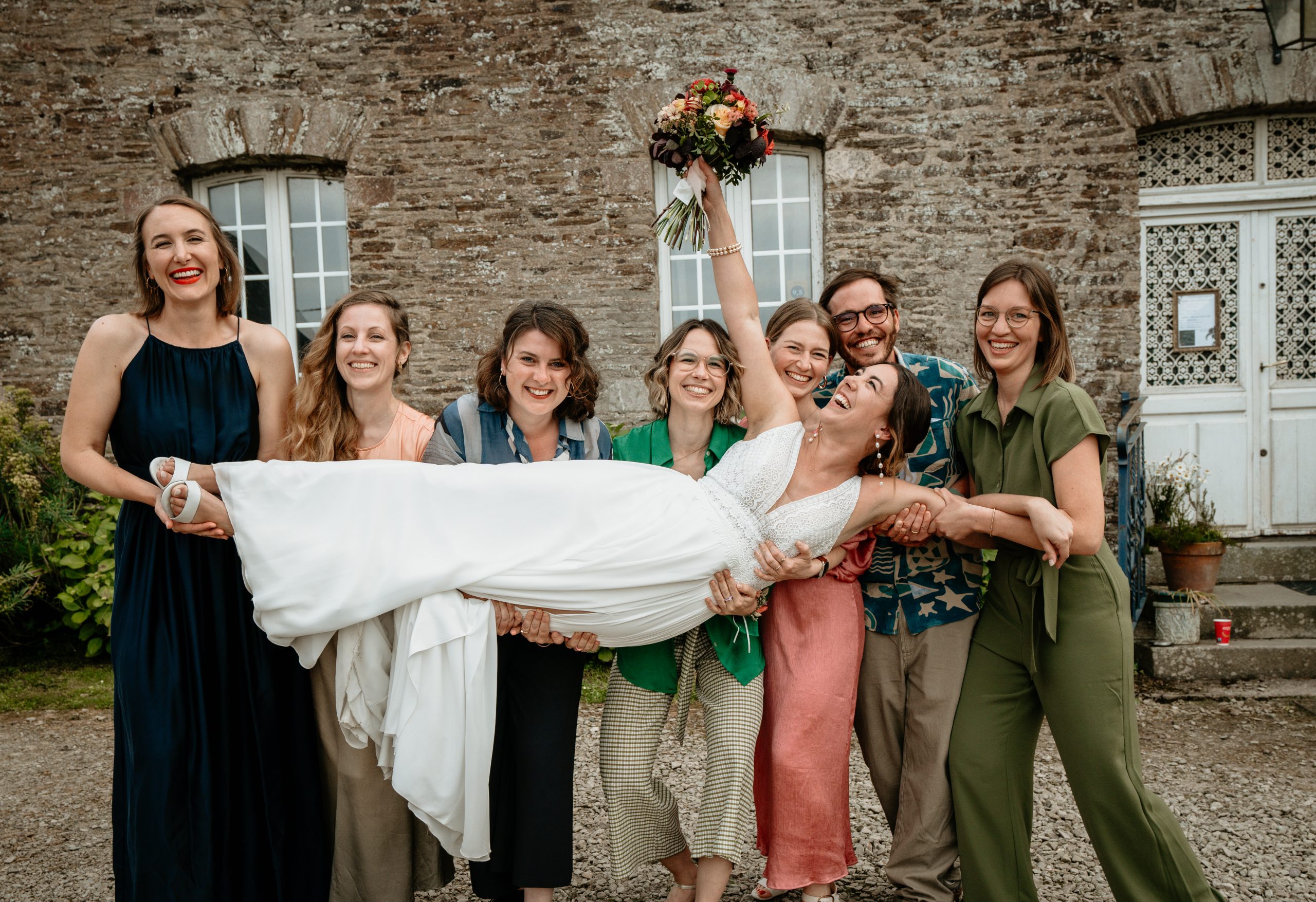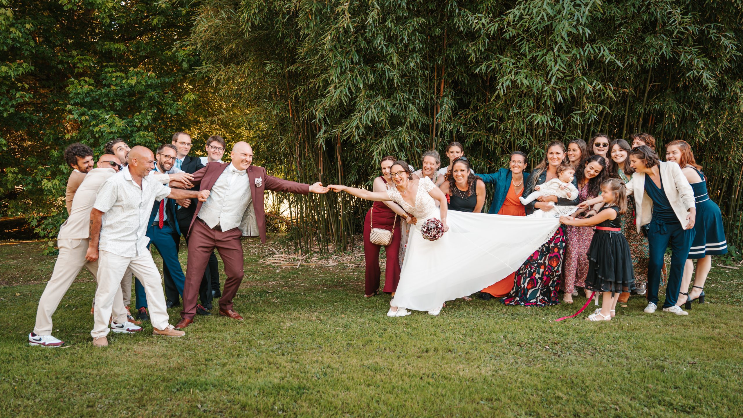 Ça y est ! Vous pouvez enfin souffler. C’est le moment de détente des mariés, la pression retombe et c’est en général le moment de faire les photos de groupes avec les proches. Il y a forcément les photos de famille classiques mais je pense qu’il faut aussi profiter de cet instant pour s’amuser et faire quelques photos funs pour garder un bon souvenir. Les photos de groupes peuvent devenir ennuyeuses pour les mariés qui enchainent les invités, il est donc de mon devoir de vous faire apprécier ce moment le plus possible. Alors faire des grimaces et lâchez-vous !