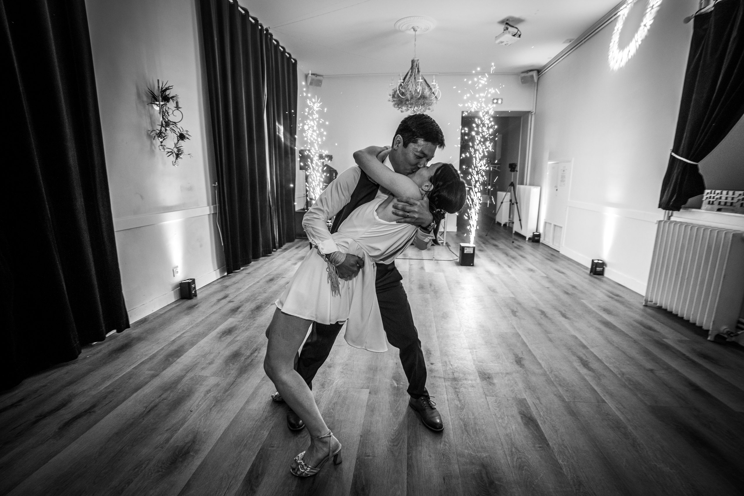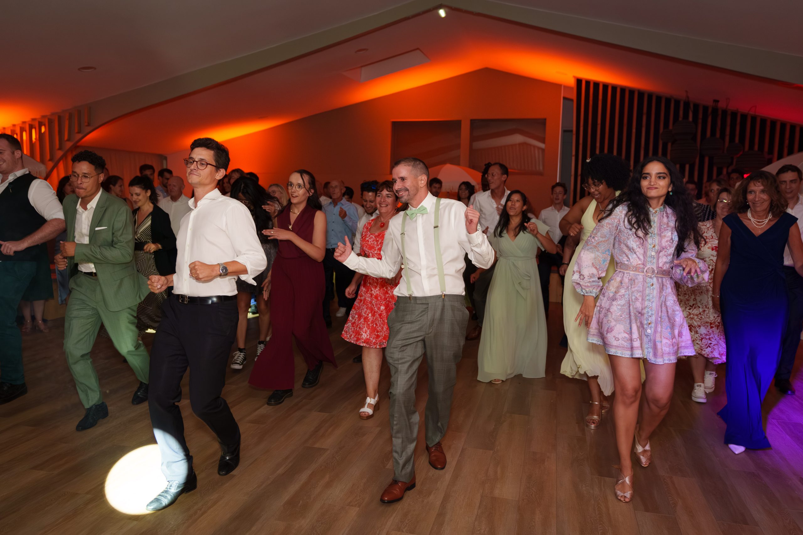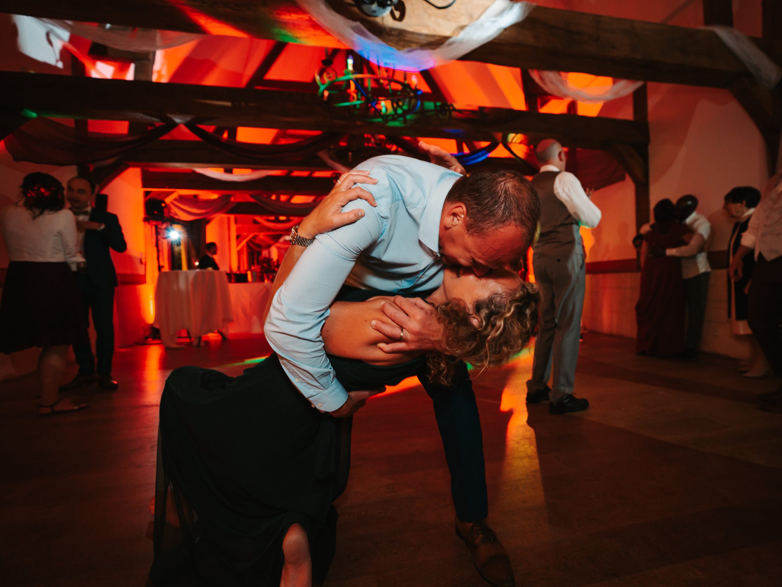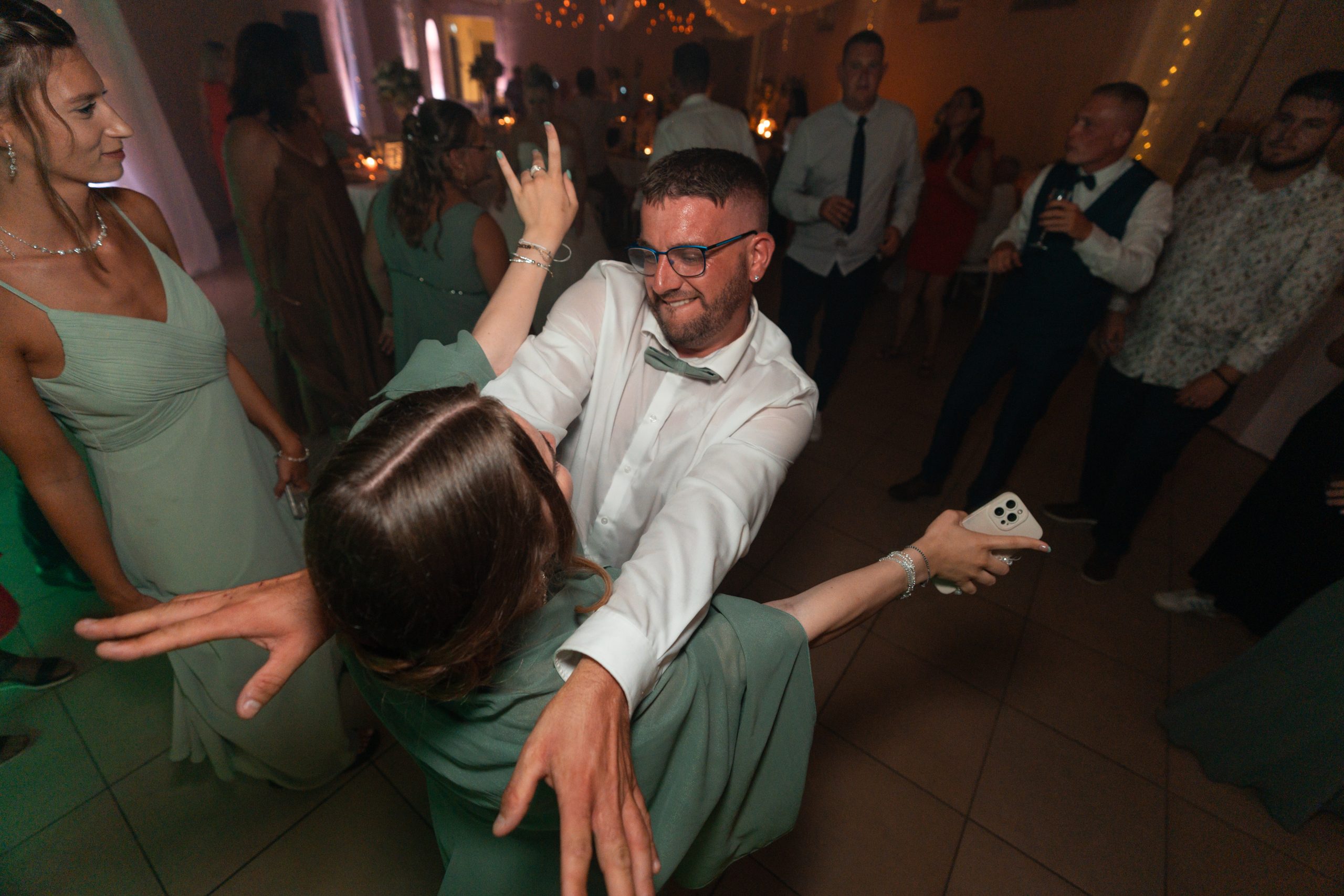 Dernière étape de cette journée bien remplie. La plupart des animations se passeront pendant le repas donc pas de repos pour le photographe. Les festivités continues et c’est le moment d’enflammer le dancefloor. Un bon dj qui saura jouer avec les lumières sans abuser de la fumée (j’insiste), c’est la garantie d’une ambiance lumineuse qui se ressentira tout de suite. Mes photos de soirées se veulent immersives. Je veux reproduire l’ambiance que vous vivez à cet instant précis.