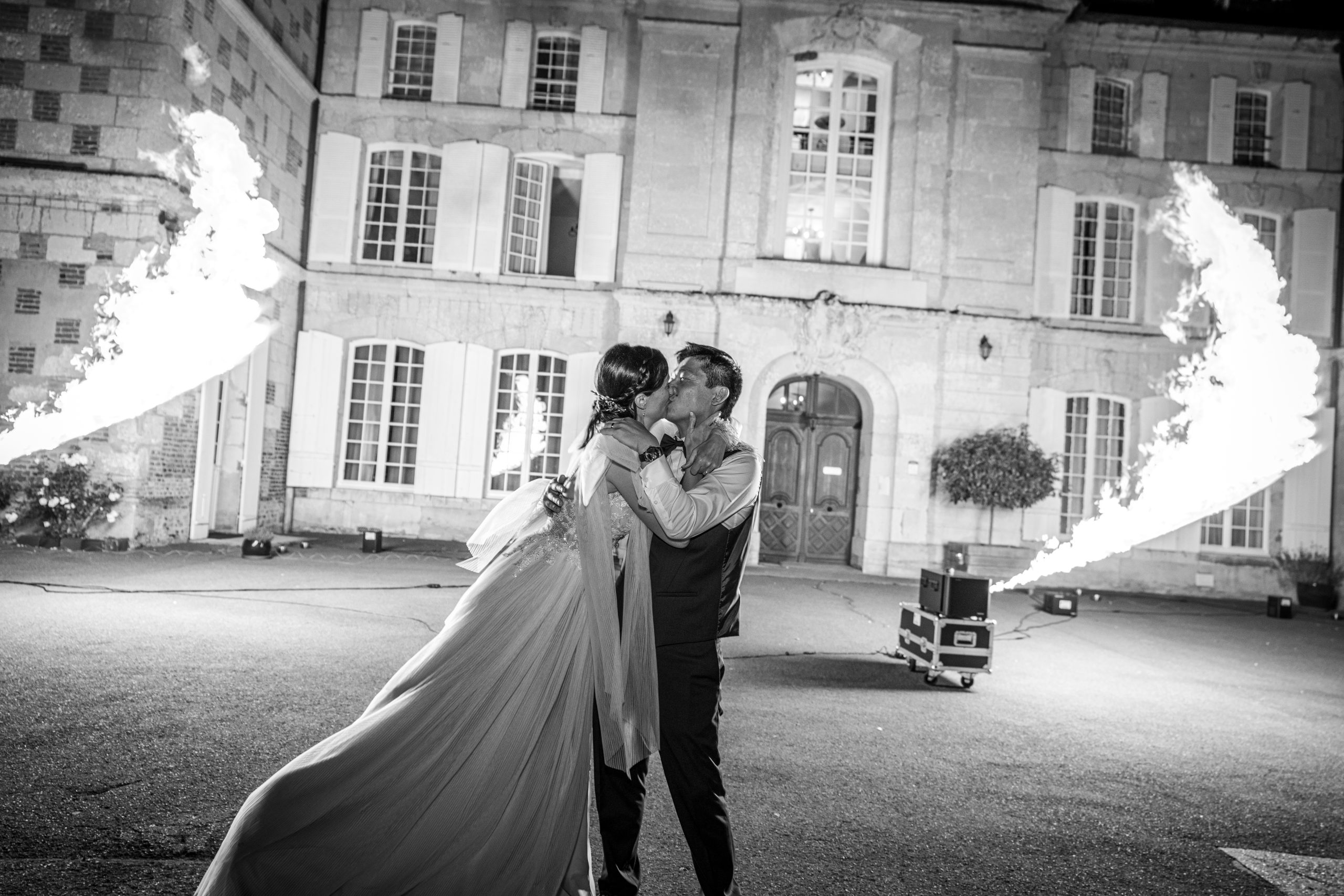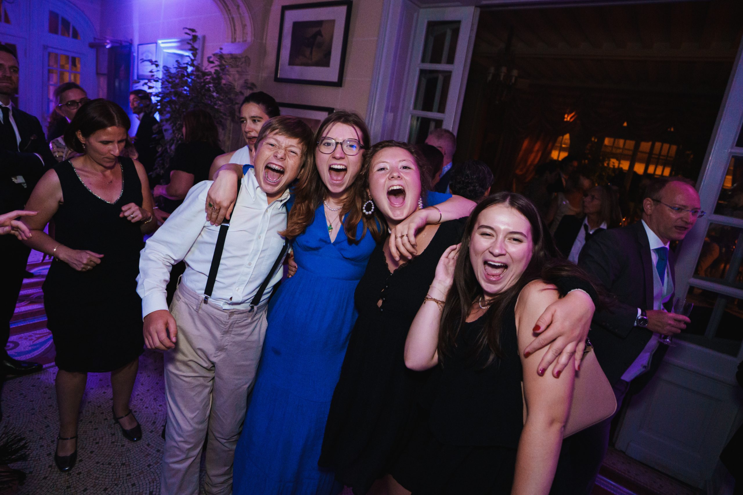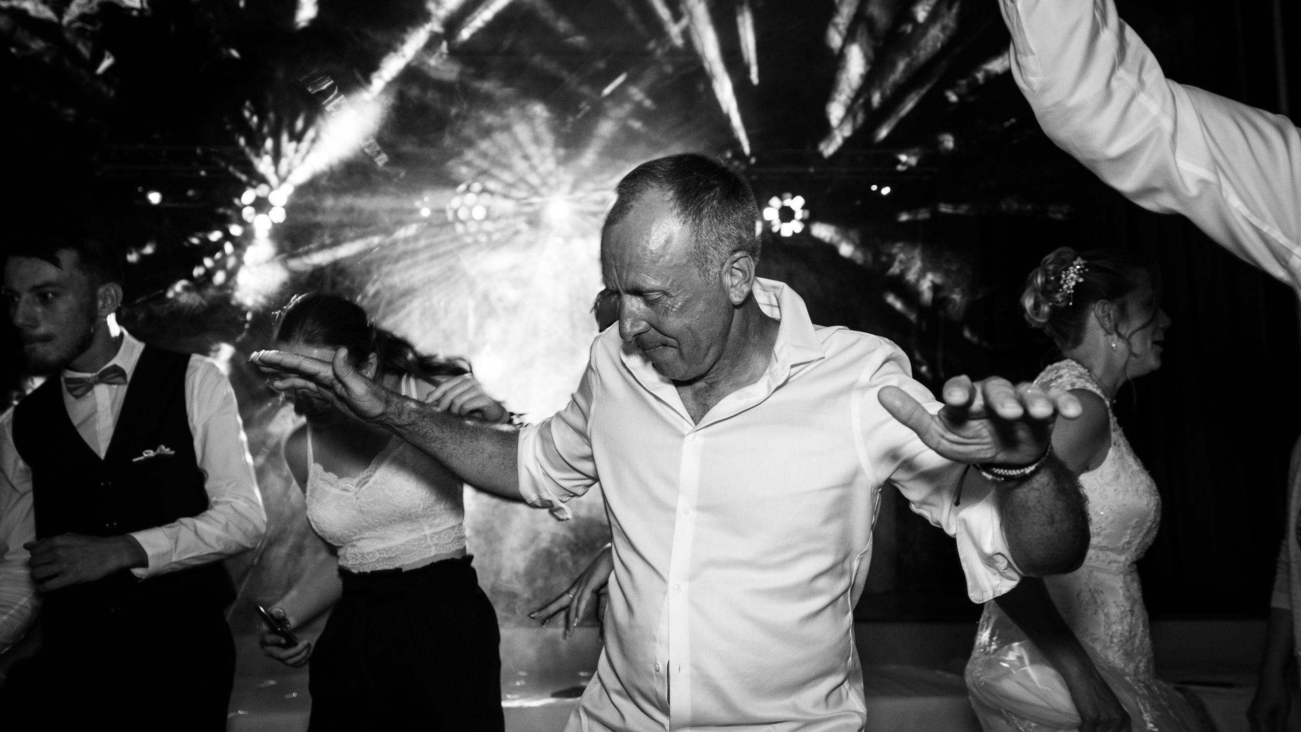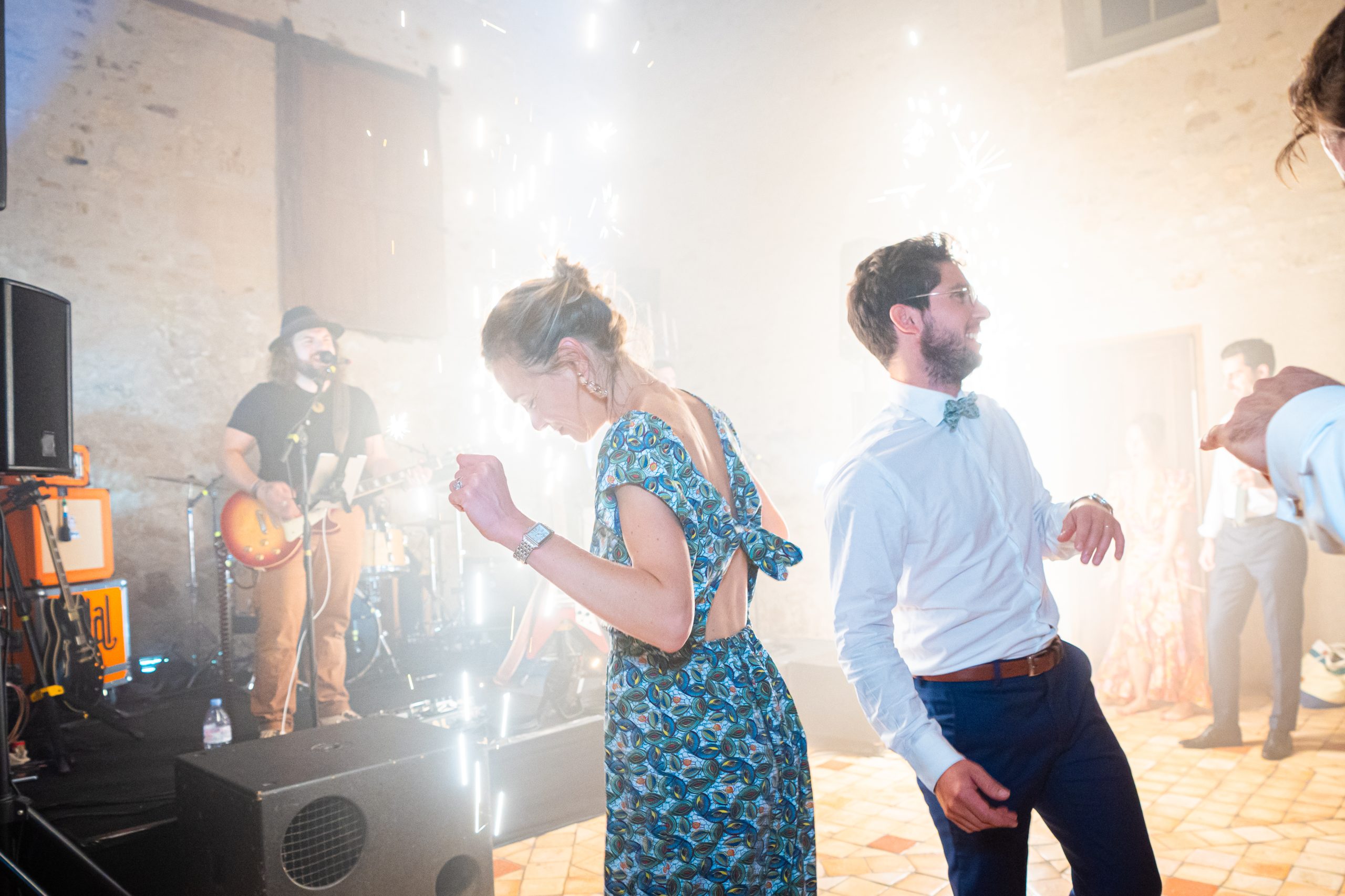 Dernière étape de cette journée bien remplie. La plupart des animations se passeront pendant le repas donc pas de repos pour le photographe. Les festivités continues et c’est le moment d’enflammer le dancefloor. Un bon dj qui saura jouer avec les lumières sans abuser de la fumée (j’insiste), c’est la garantie d’une ambiance lumineuse qui se ressentira tout de suite. Mes photos de soirées se veulent immersives. Je veux reproduire l’ambiance que vous vivez à cet instant précis.