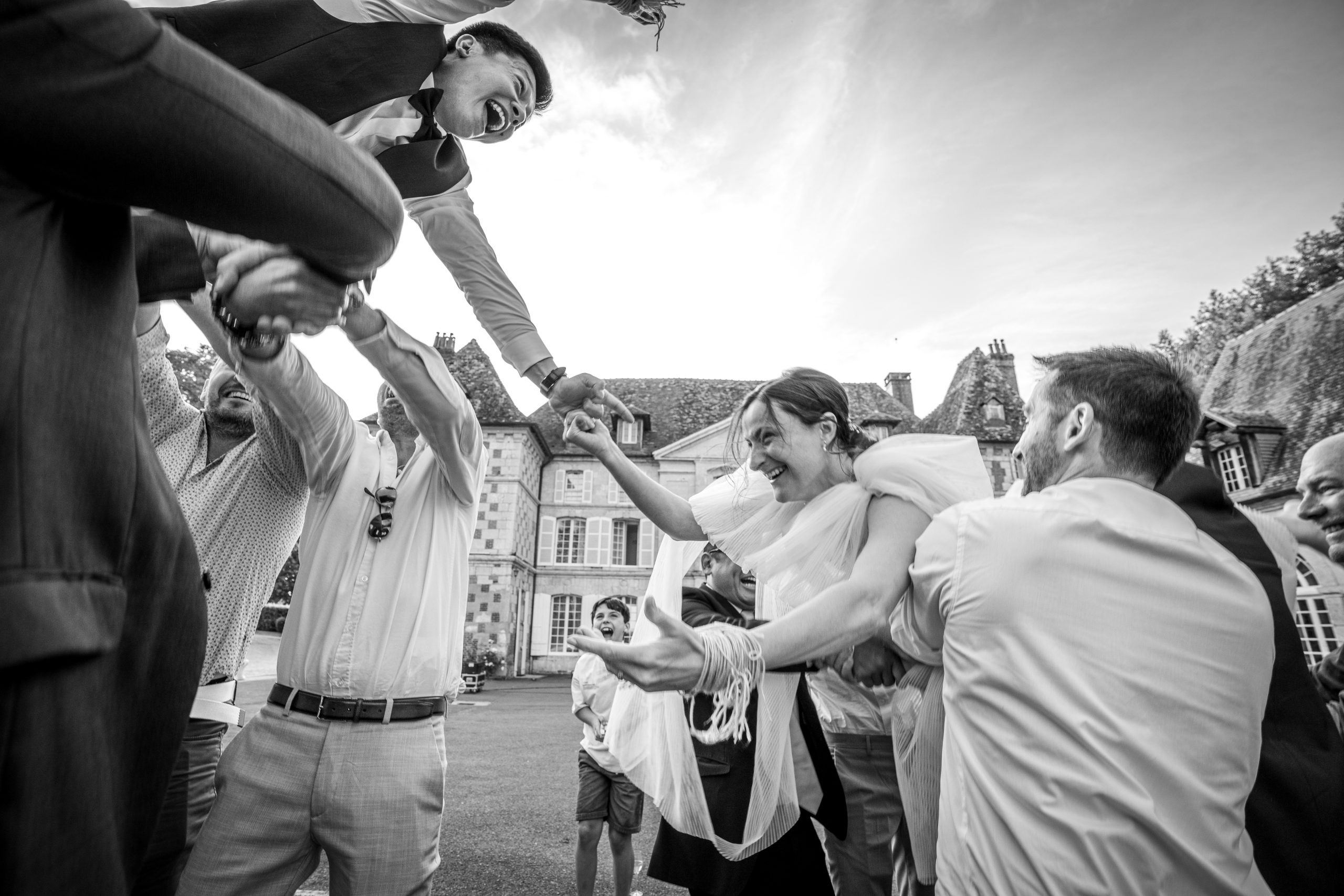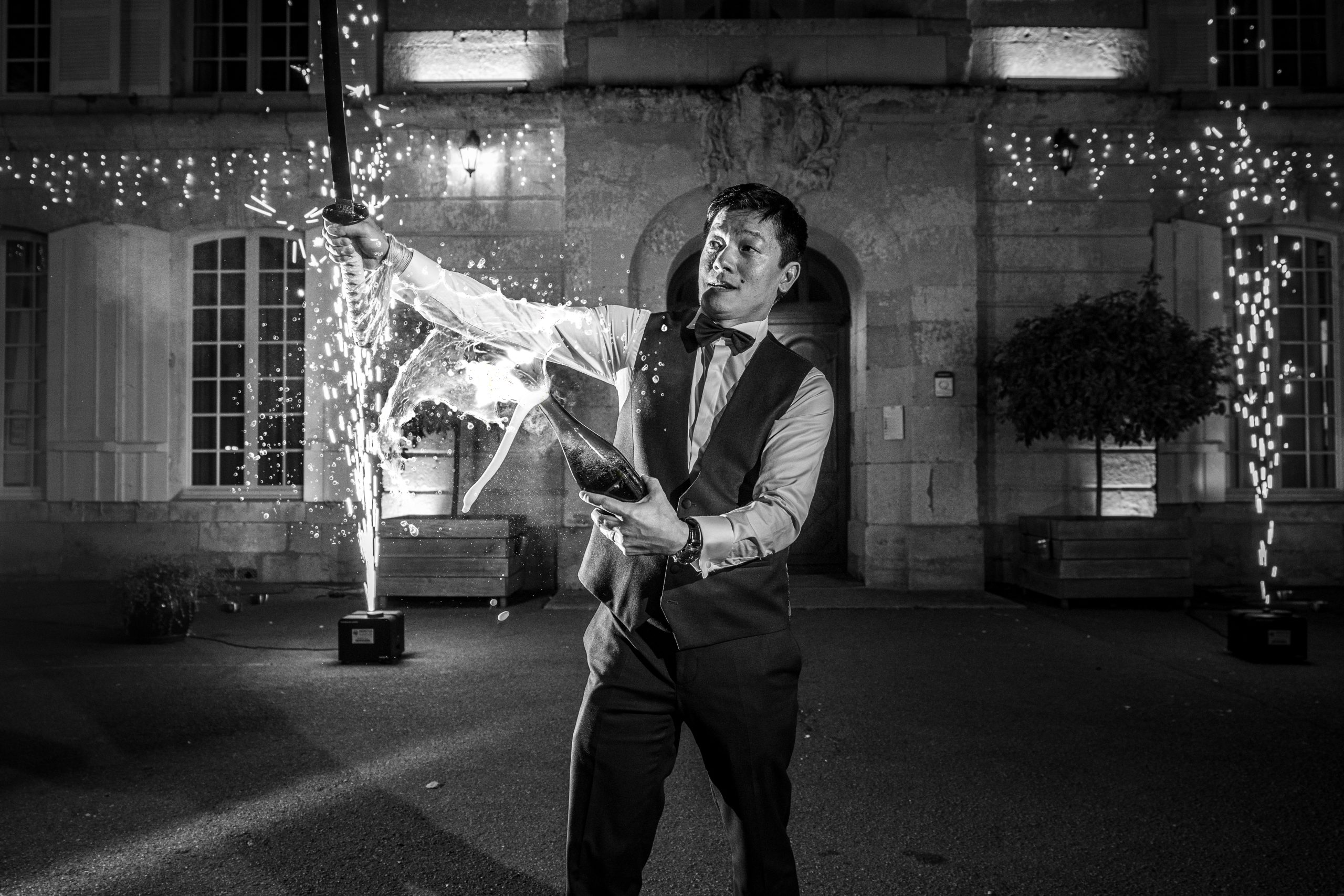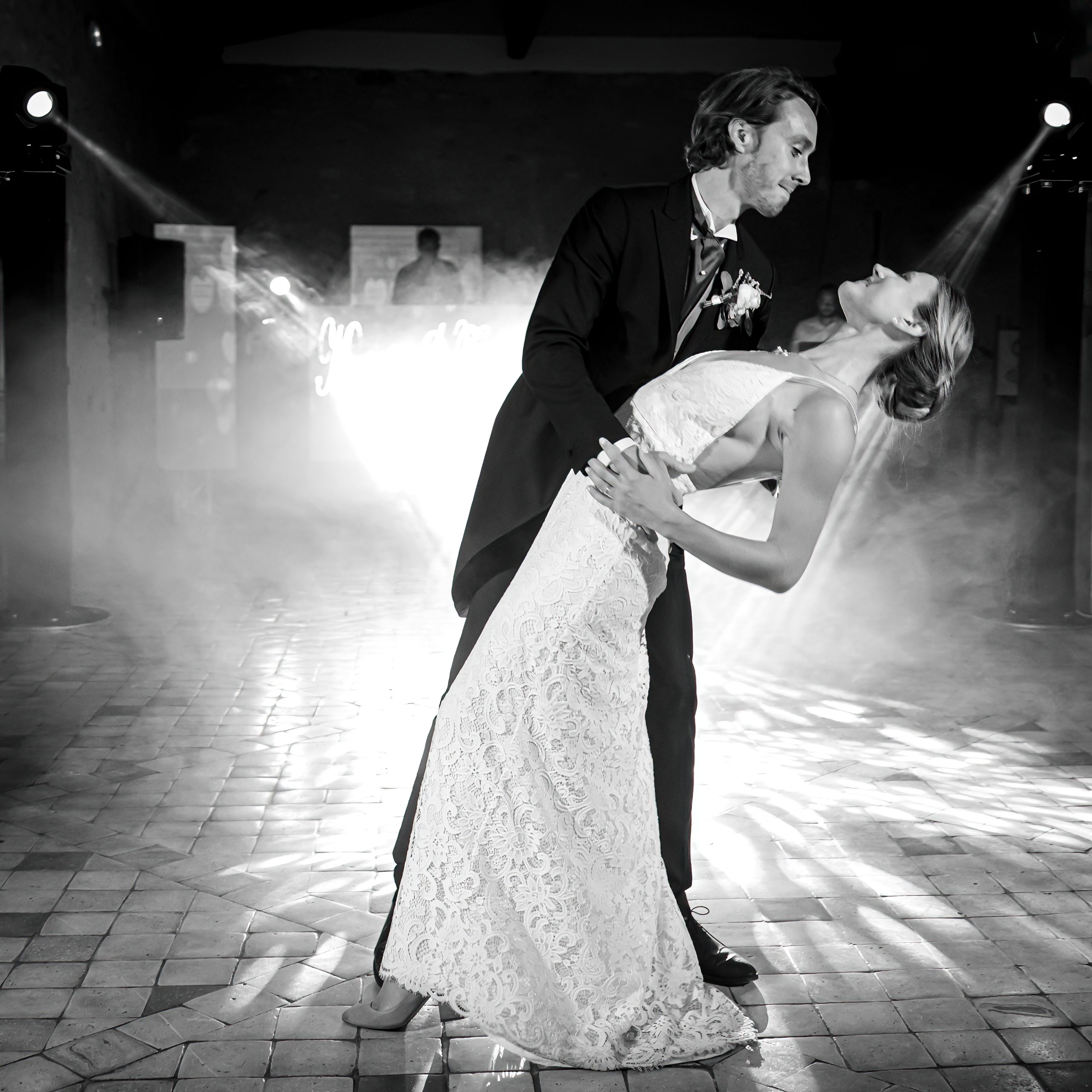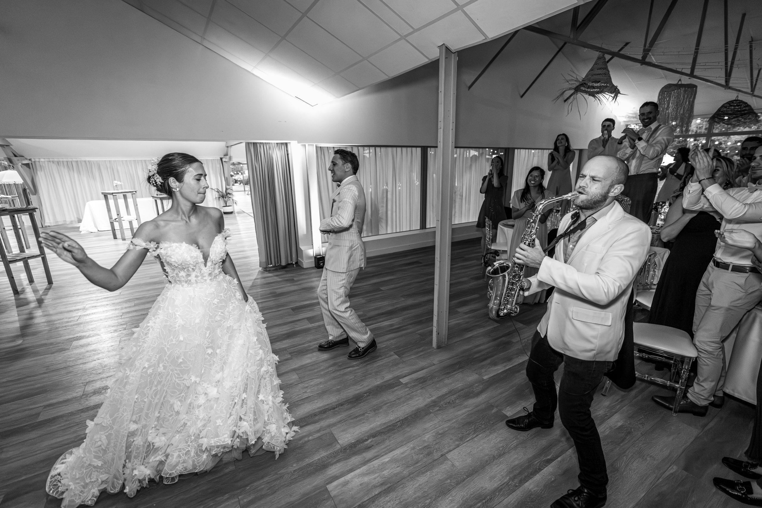 Dernière étape de cette journée bien remplie. La plupart des animations se passeront pendant le repas donc pas de repos pour le photographe. Les festivités continues et c’est le moment d’enflammer le dancefloor. Un bon dj qui saura jouer avec les lumières sans abuser de la fumée (j’insiste), c’est la garantie d’une ambiance lumineuse qui se ressentira tout de suite. Mes photos de soirées se veulent immersives. Je veux reproduire l’ambiance que vous vivez à cet instant précis.