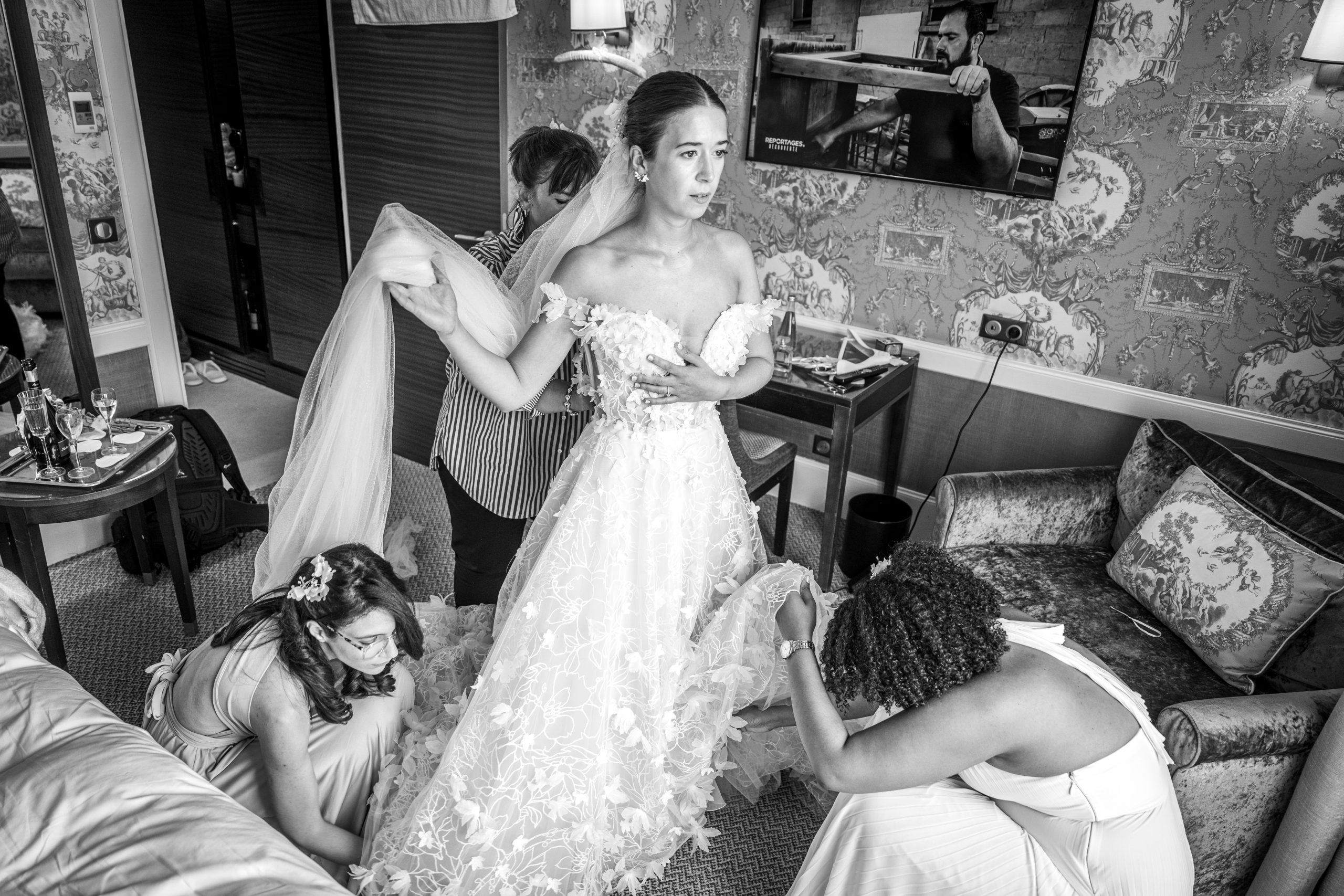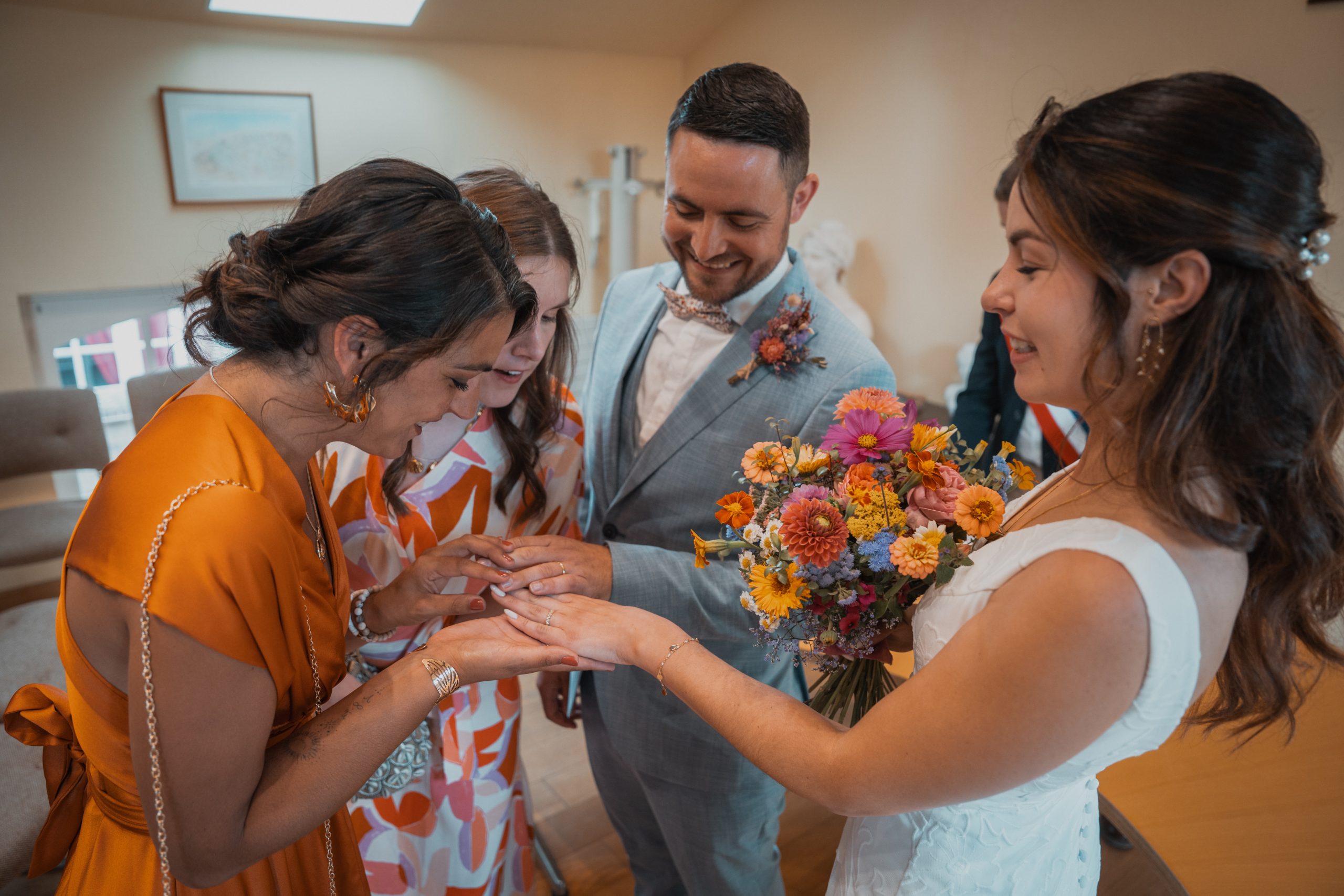 C’est le moment de se mettre sur son 31. Il y a parfois des larmes lors de la découverte de la mariée par la famille. Des rires avec les témoins qui font la grimace. Et surtout, le photographe qui est là pour capturer ces petits détails que vous ne voudrez pas oublier.