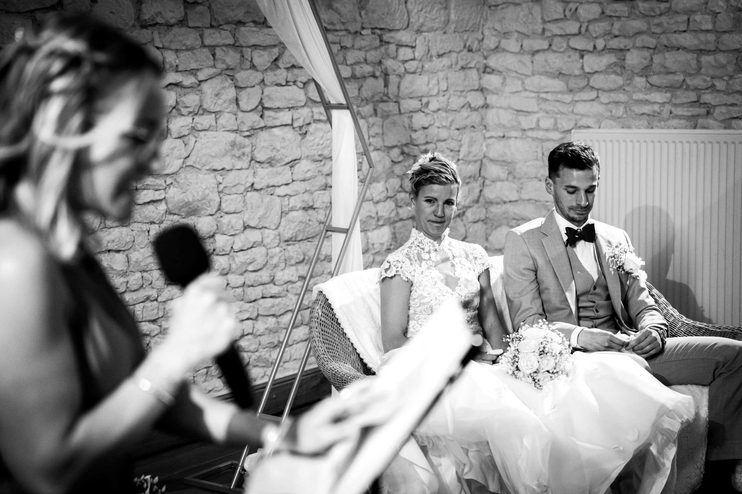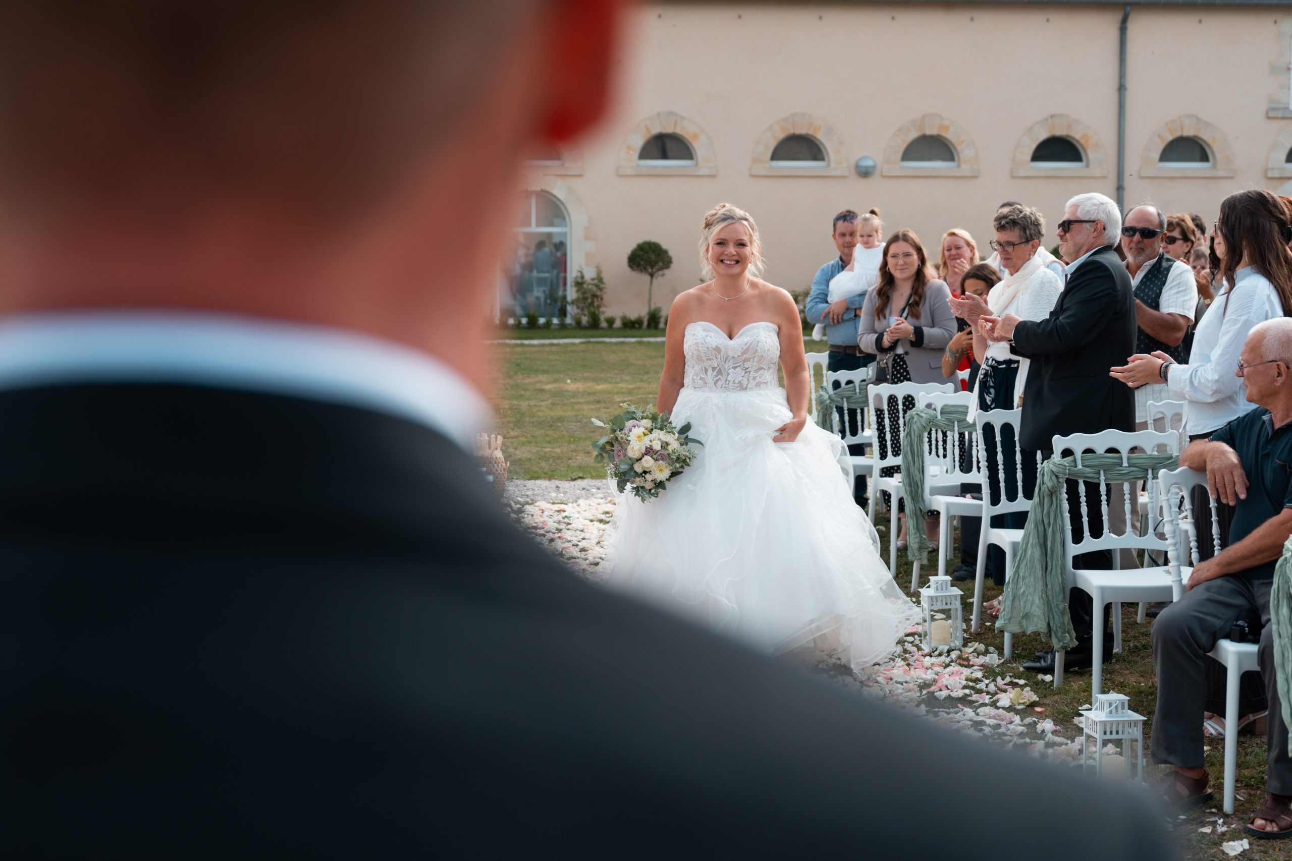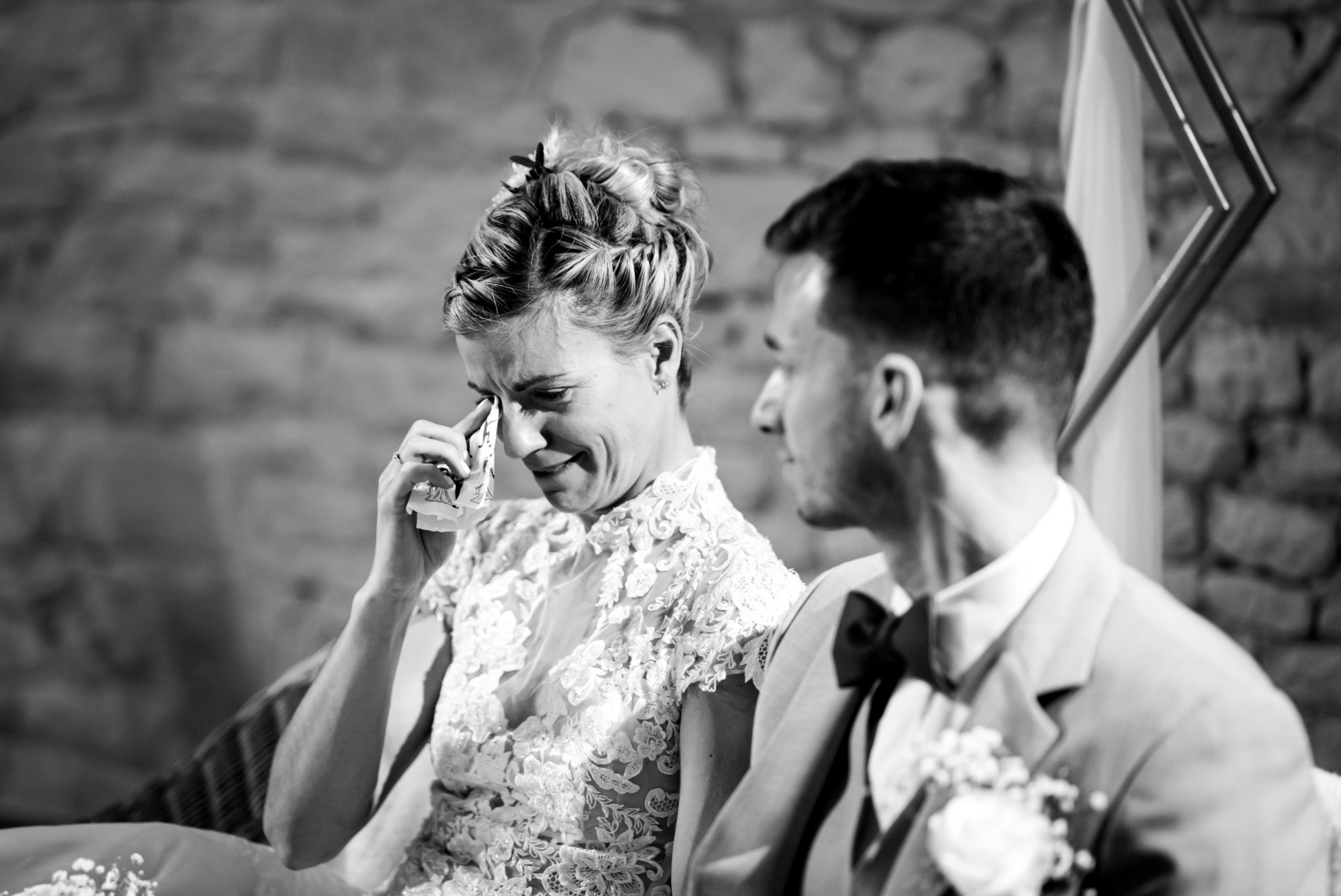 Nous voilà au moment le plus redouté. Pas le droit à l’erreur car pas question de refaire la scène et de gâcher le moment. Telle une petite souris, je me déplace discrètement sur les lieux afin de capturer chaque détails, chaque larmes versées par les invités et surtout l’émotion des mariés qui franchissent le pas vers cette nouvelle vie.